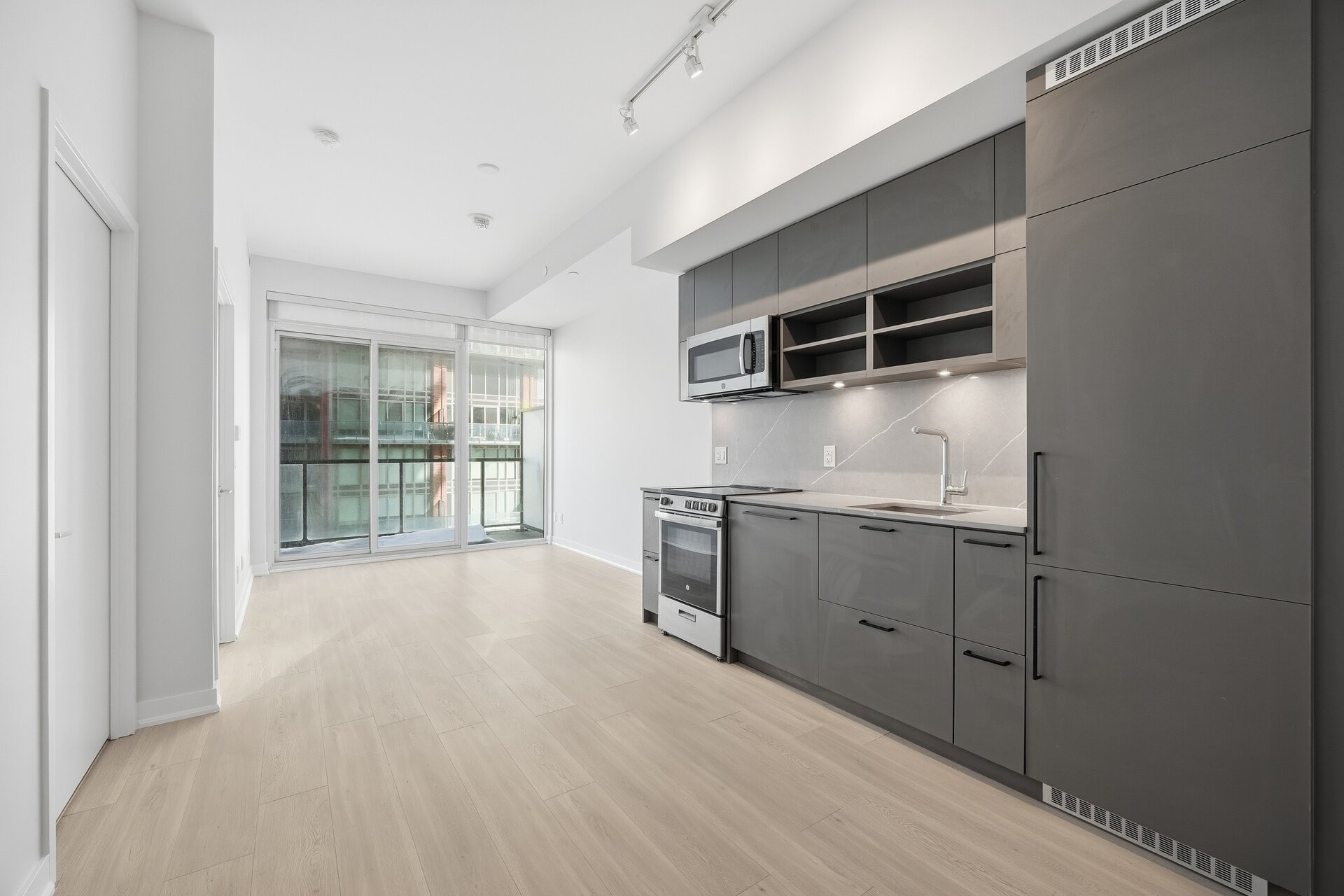 Welcome to Liberty Village's Market Tower. This 1+den, 1-bathroom suite offers 611 sq'. of well-designed interior space, ideally located on the 15th floor with unobstructed eastern views. Large windows flood the suite with natural light and open onto a sunny private balcony, the perfect spot to enjoy expansive city views and morning sun. The modern kitchen features soft-close cabinetry, built-in appliances, and granite countertops, seamlessly blending style and functionality. The versatile den is ideal for a home office or guest space, while the thoughtfully designed layout maximizes both comfort and usability.
